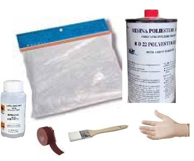 Kit fibre de verreComposition du kit : 0,75 cl de résine, durcisseur 1 pinceaux Une paire de gants latex Mat de verre 50*60cm 1 pot pour préparation 1...