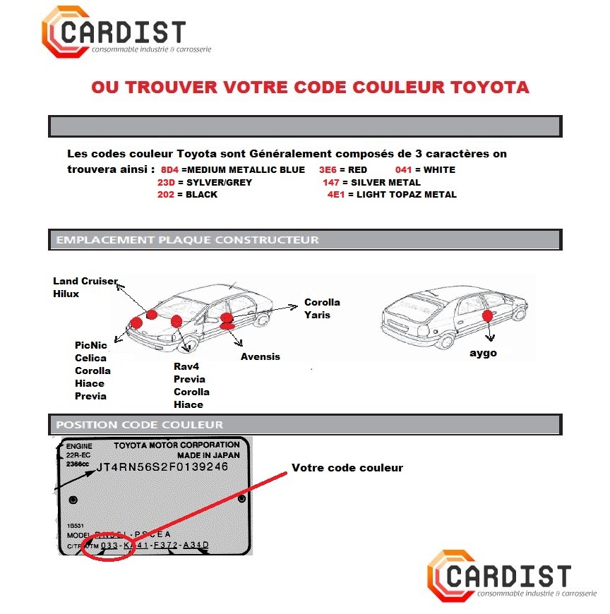 Kit peinture en spray 400ml + vernis en spray 400 ml pour TOYOTA Cliquez sur l'image pour localiser votre code couleur Toyota Teinte à la demande,...