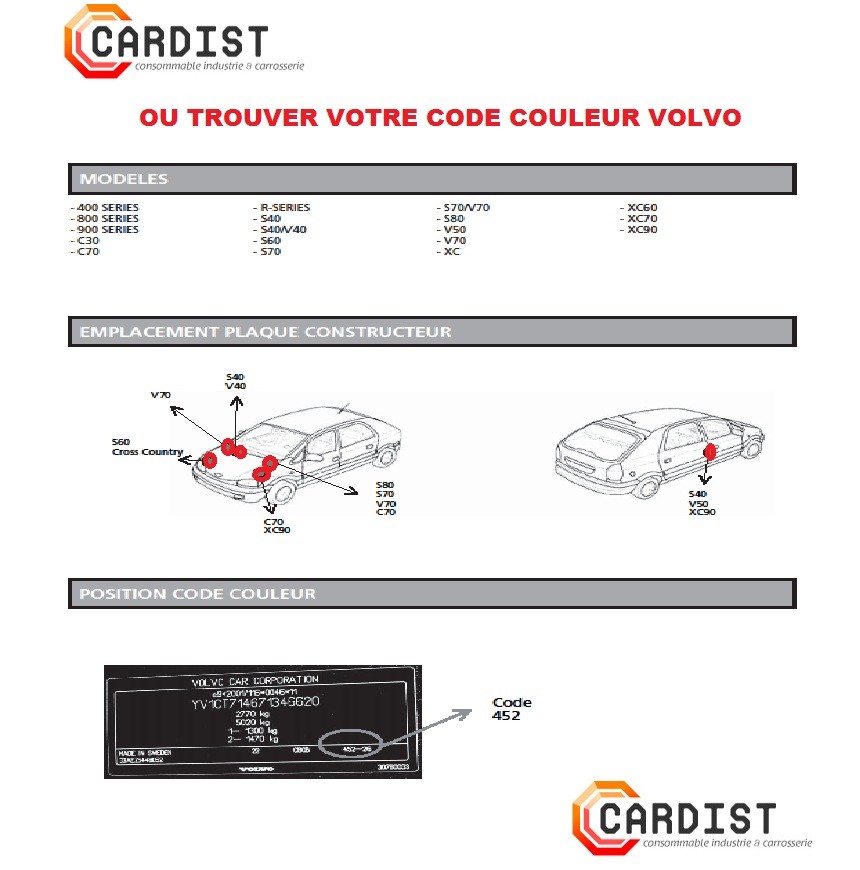 kit Bombe de peinture (teinte à la demande) + spray vernis 400ml pour VOLVO