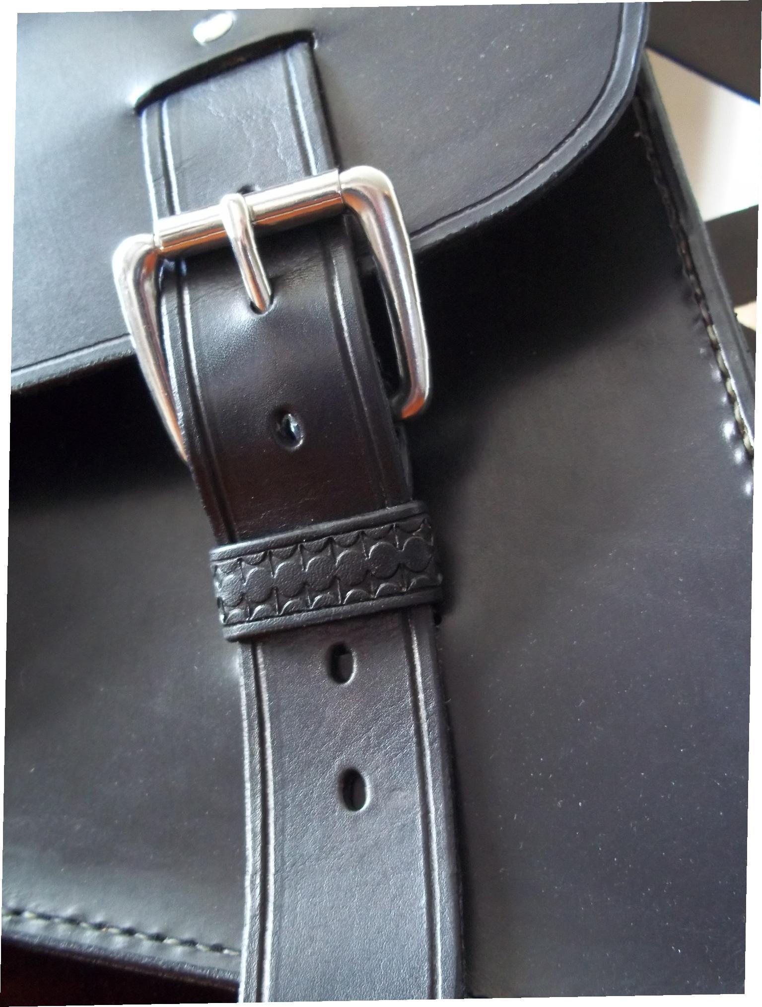 different du modele standard: sangle plus large et boucles chromé Sacoche latéral pour sportser  cuir de   3 .5 mm d épaisseur ...