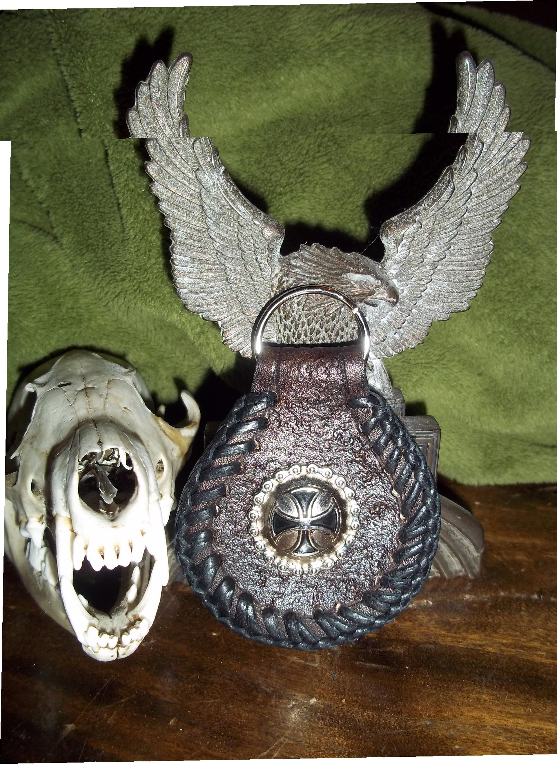 Porte clé fait main en cuir et tressé  -councho croix de Malte cerclé d une chaine tout mes counchos sont des imports US grand...