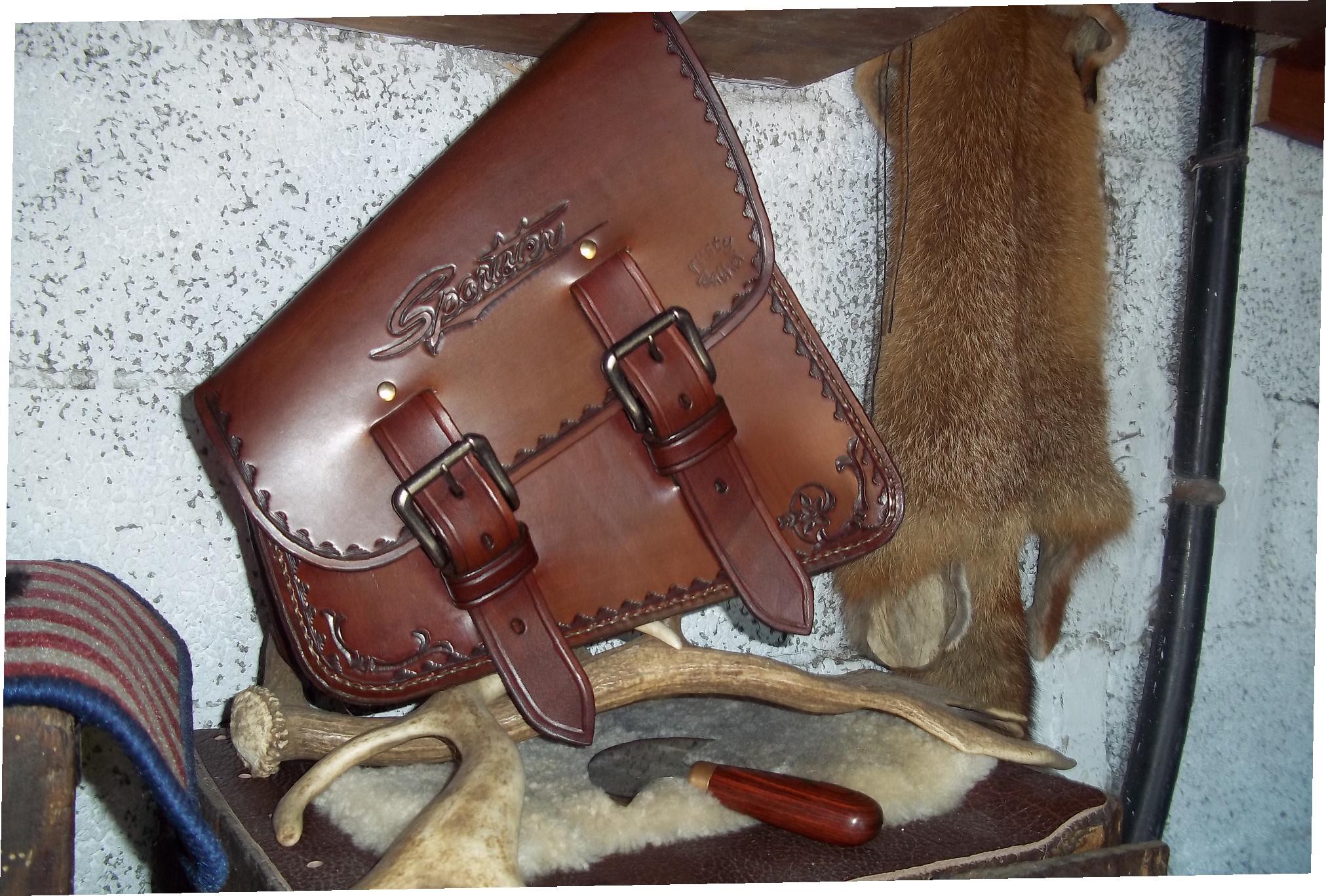 • sacoche latéral pour sportser harley en cuir repoussé inversé