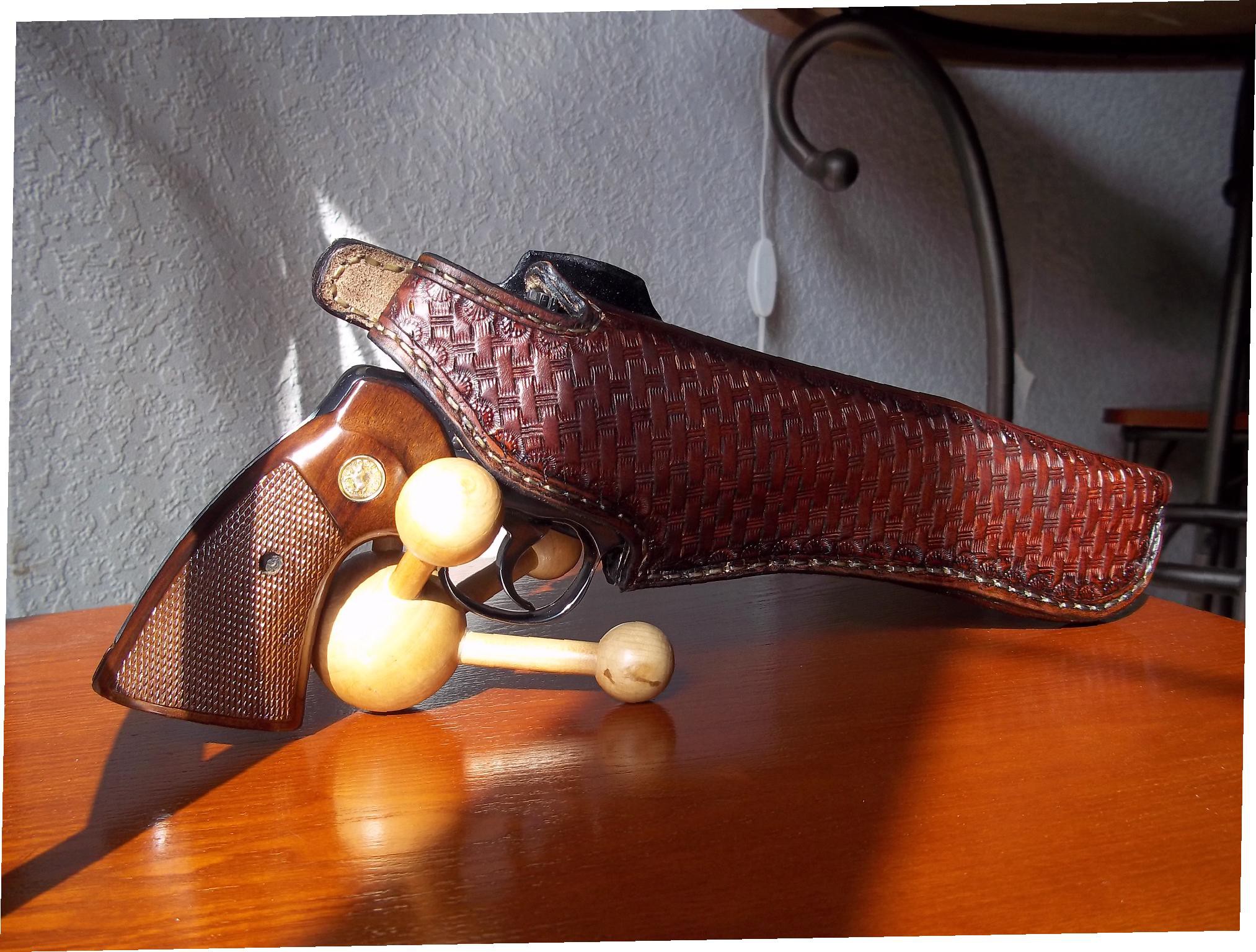 Holster pour colt en six pouces et demi entierement fait main   ARME FACTICE ET PAS A VENDRE