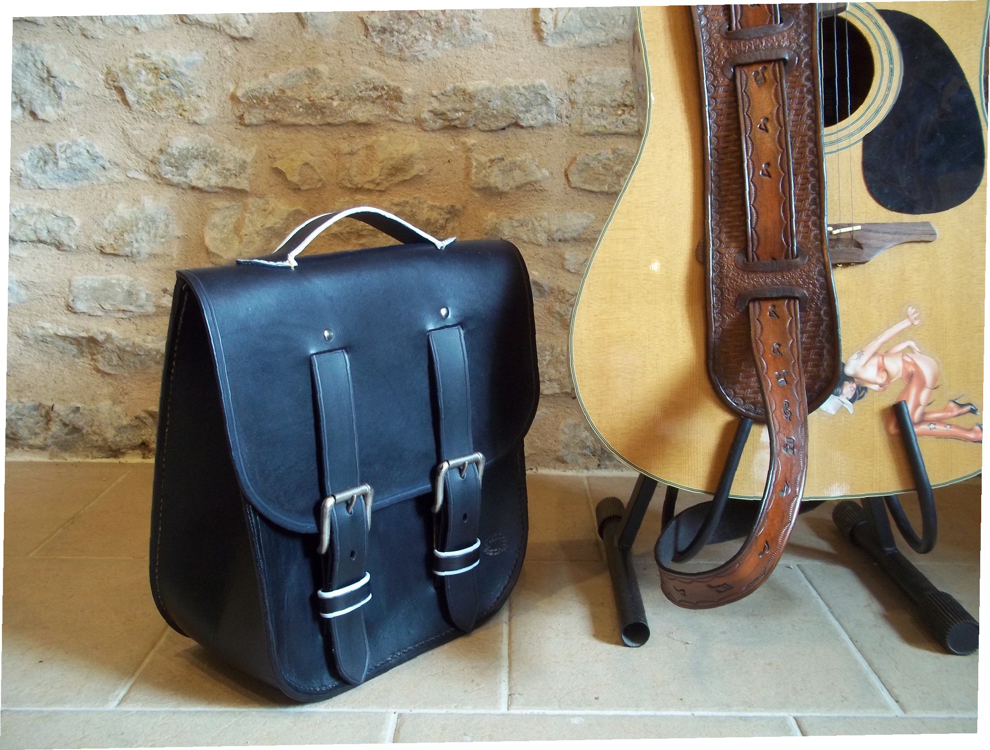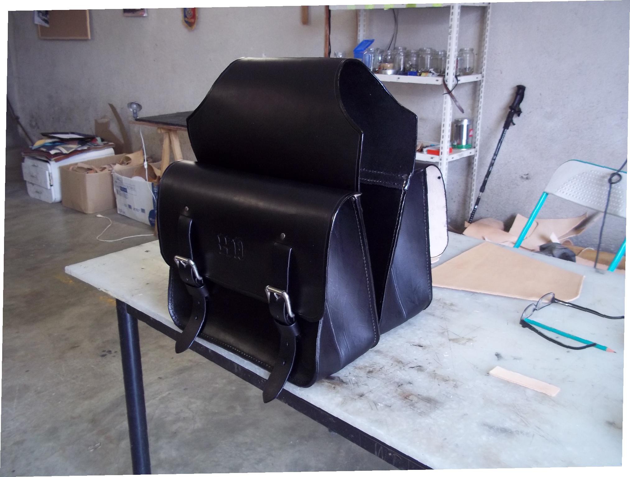 Sacoche pour street bob en cuir faite 100%  main avec poigné de transport option sans poigné- 300 euros