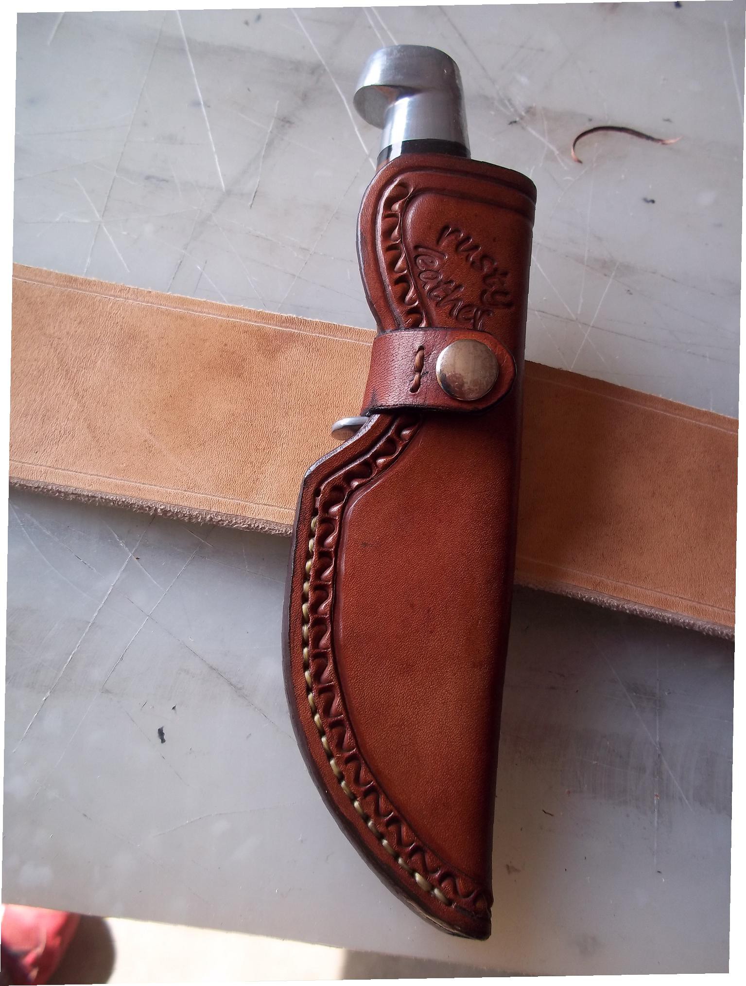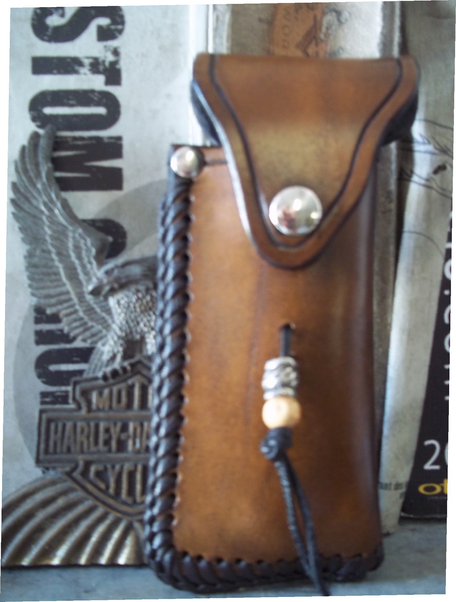 etui a couteaux pliant  de forme rectangulaire fait main tressage lacet cuir cuir   végétal nourri a 5.5  teinté ...