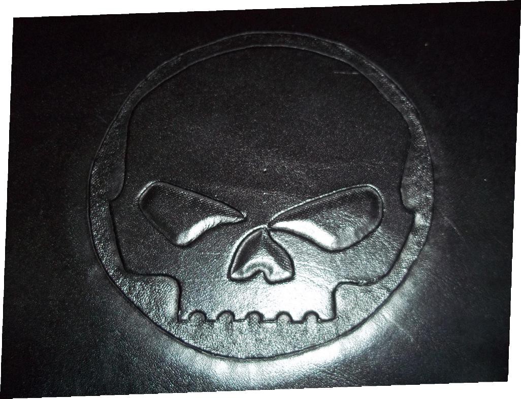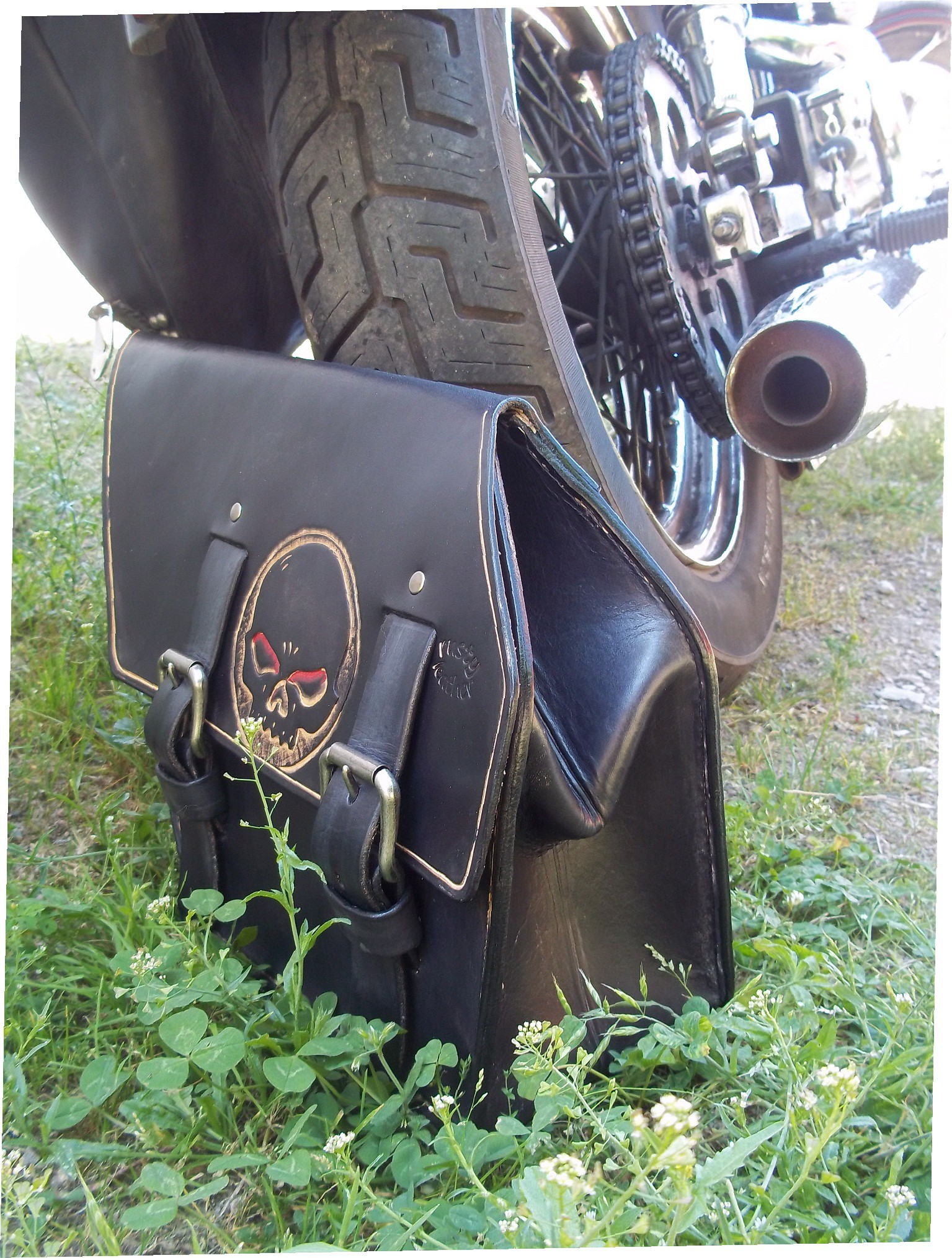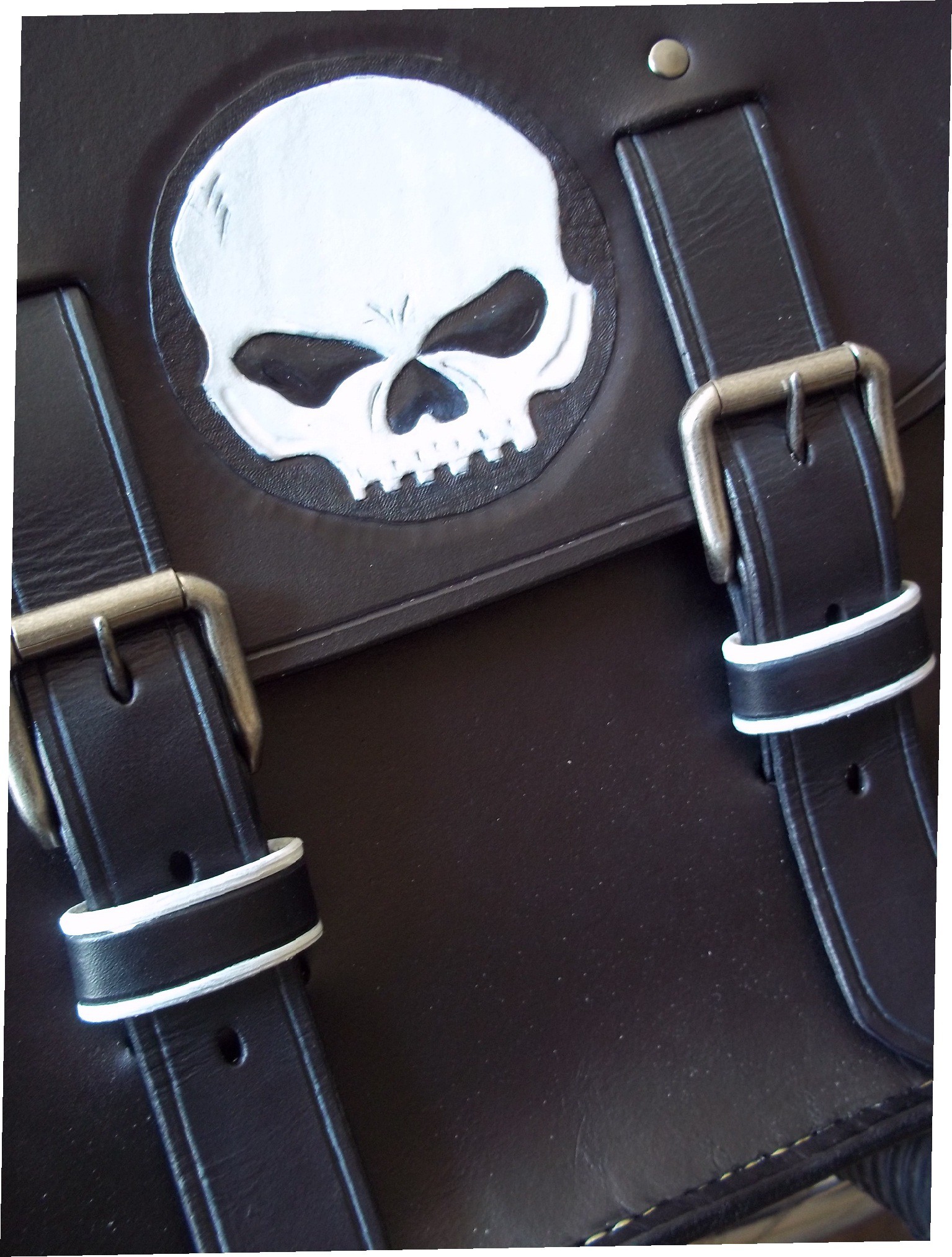 Sacoche pour street bob   ou Dyna  cuir repoussé "skull"