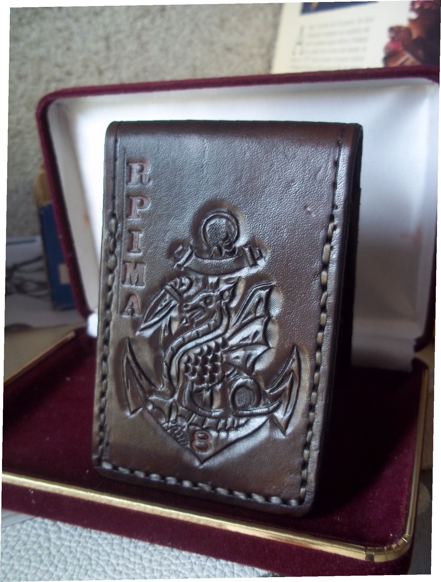 porte carte de credit  en cuir nourri a 5.5%   : insignes regimentaires ou cie au choix, contient juqu a 8 ou 9 cartes   ...