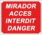 Pancarte “Mirador Accés interdit Danger“ A fixer sous le plancher du mirador face à l'échelle a l'aide de 2 équerres. De cette maniére si une personne...