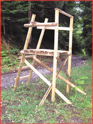 Mirador de battue “basique“ Hauteur de plancher: 1,10 m. Poteaux et échelle en rondins de 80 mm. Plancher brut de scierie anti-dérapant, Barreaux d'échelle...