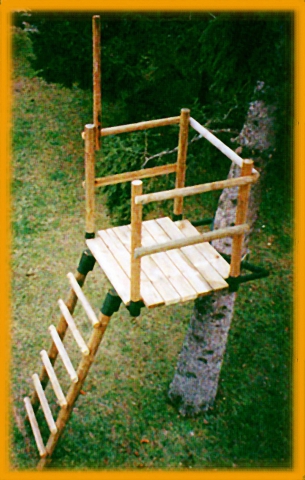 Avec platine-cadre métallique 1,10x1,00 m, poteaux en rondin diam.80, barreaux d'échelle carré 50x50, contreventements 1/2 rondin de 80, plancher epaisseur...