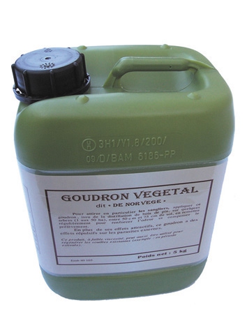 Goudron liquide pour réactiver les arbres déjà traités ou pour imprégner des arbres naturellement fréquentés.