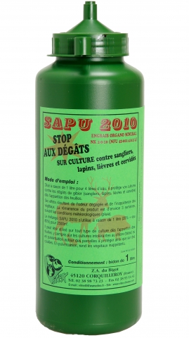 Répulsif/engrais concentré à mélanger avec 4 x son volume d’eau. Pulvérisé , il protège les cultures contre les dégâts du gibier ( sangliers, cervidés,...