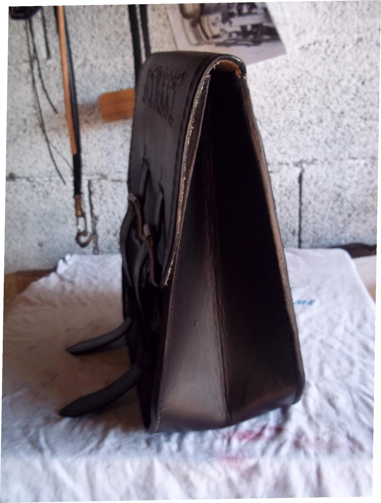 trousse a outil    cuir    pour sportser harley ou autres entierement faite a la main dans du cuir de 3 mm d epaisseur, couture sellier , de meme pour les sangles de fermeture  cette trousse est ciré patiné mais couleur au choix cuir repoussé - model   a votre discrétion apres validation dimension 27 X11   Cm   fixation par sangles -fournies un travaille me model unique ...alors