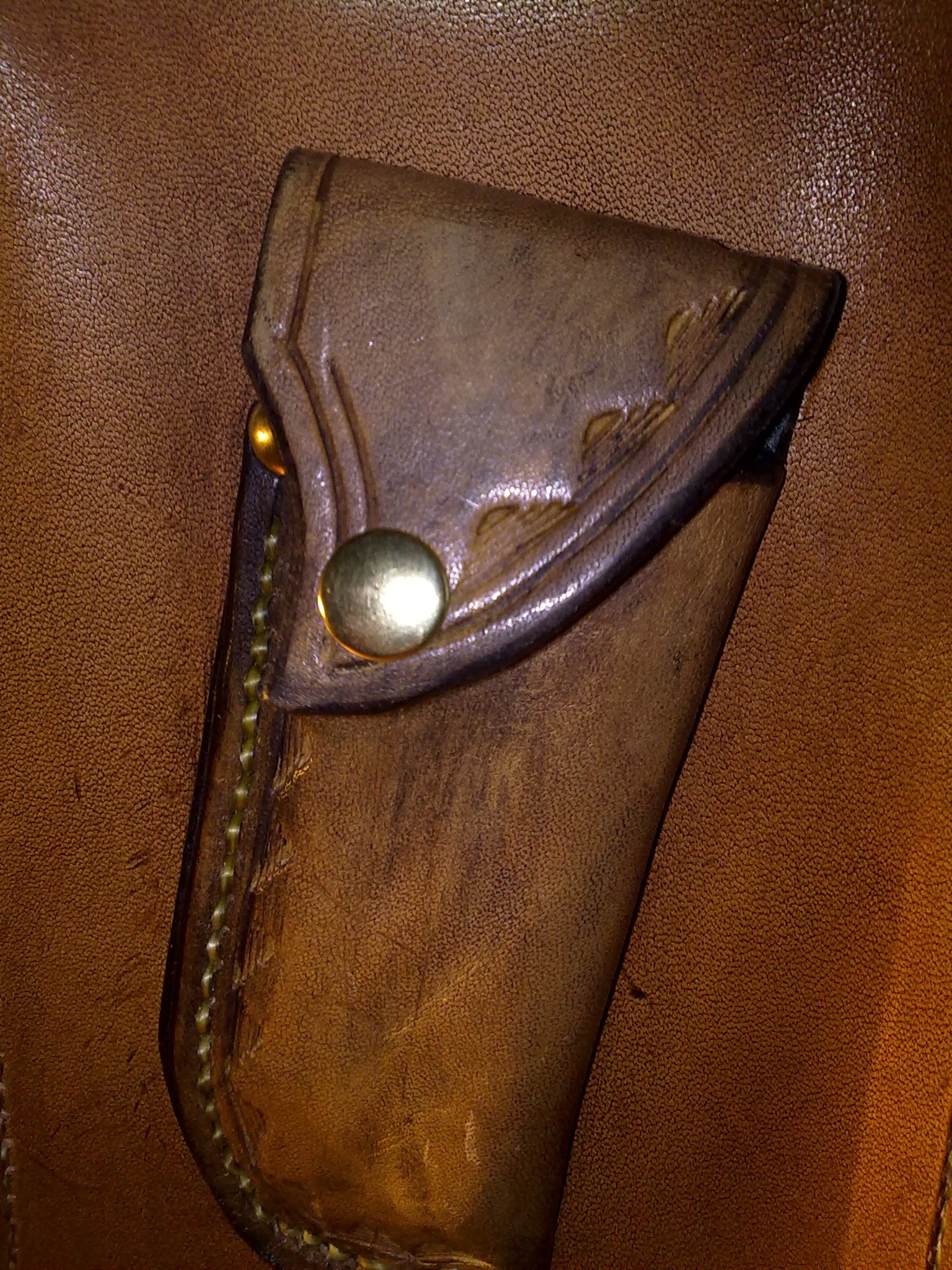 sacoche entierement faite main avec etui a couteau pliant cousu a meme la sacoche