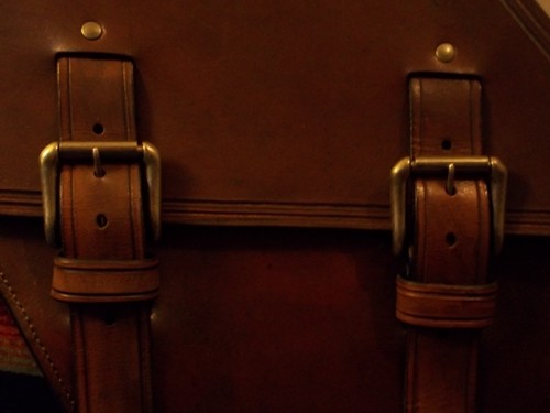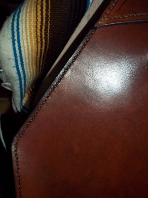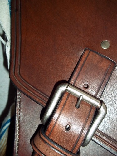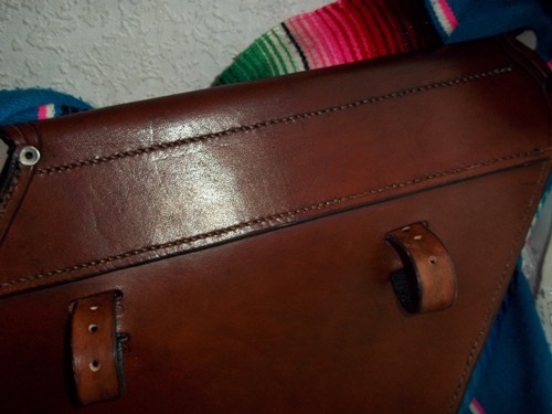 couture sellier faite main, rabat renforcé par deux rangées de couture
