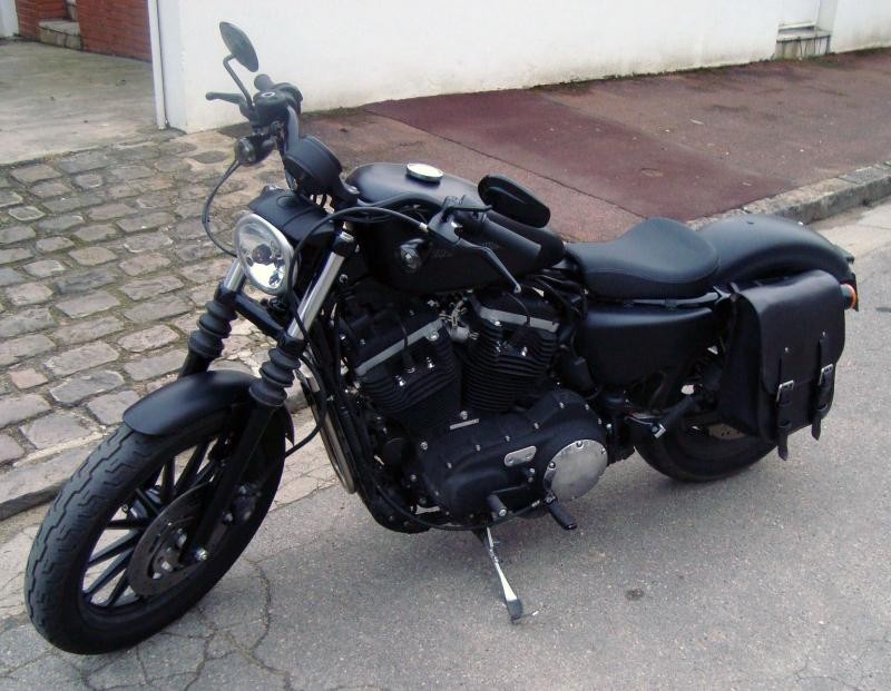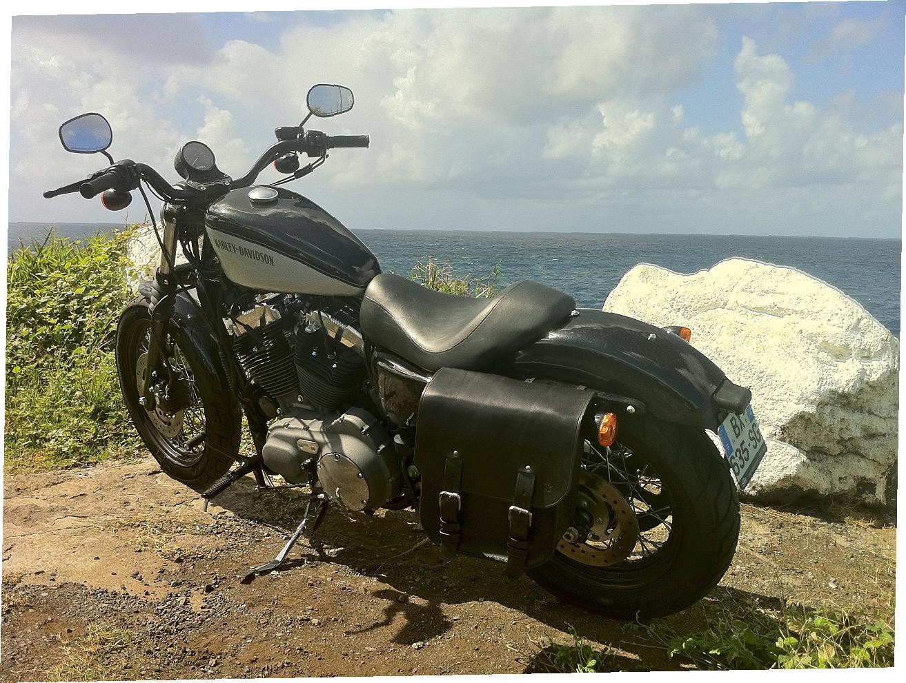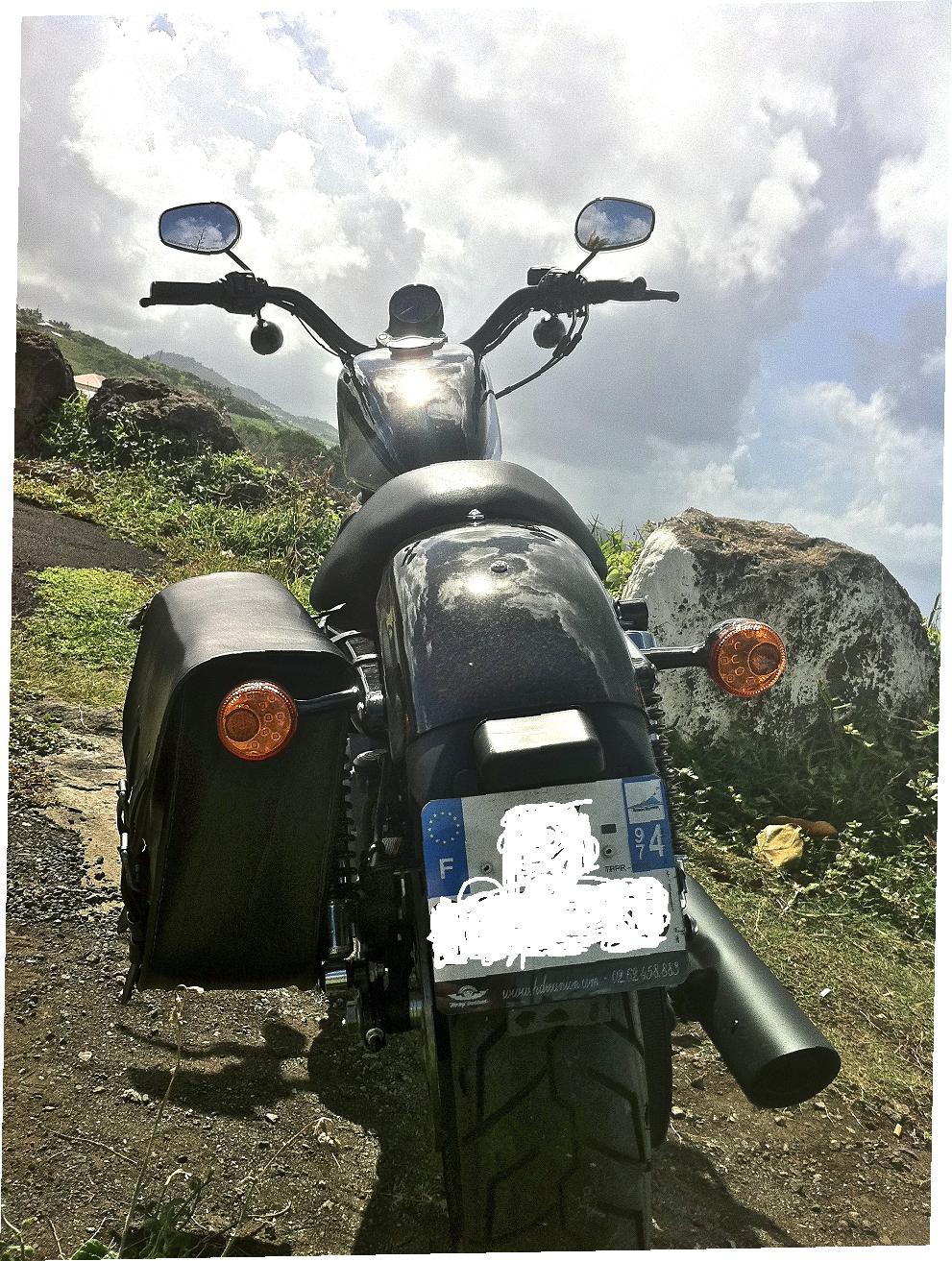 fixation par trois sangles directement sur les sabres ,pas d ecarteur et se monte meme avec sissy bar amovible