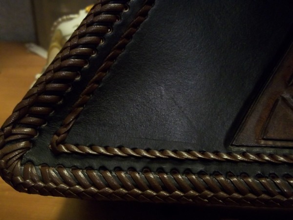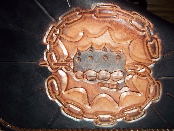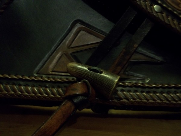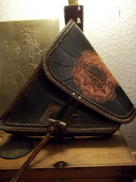 trousse a outil    cuir    pour sportser harley ou autres entierement faite a la main dans du cuir de 3 mm d epaisseur, couture sellier , de meme pour les sangles de fermeture  cette trousse est ciré patiné mais couleur au choix cuir repoussé - model   a votre discrétion apres validation dimension 27 X11   Cm   fixation par sangles -fournies un travaille me model unique ...alors