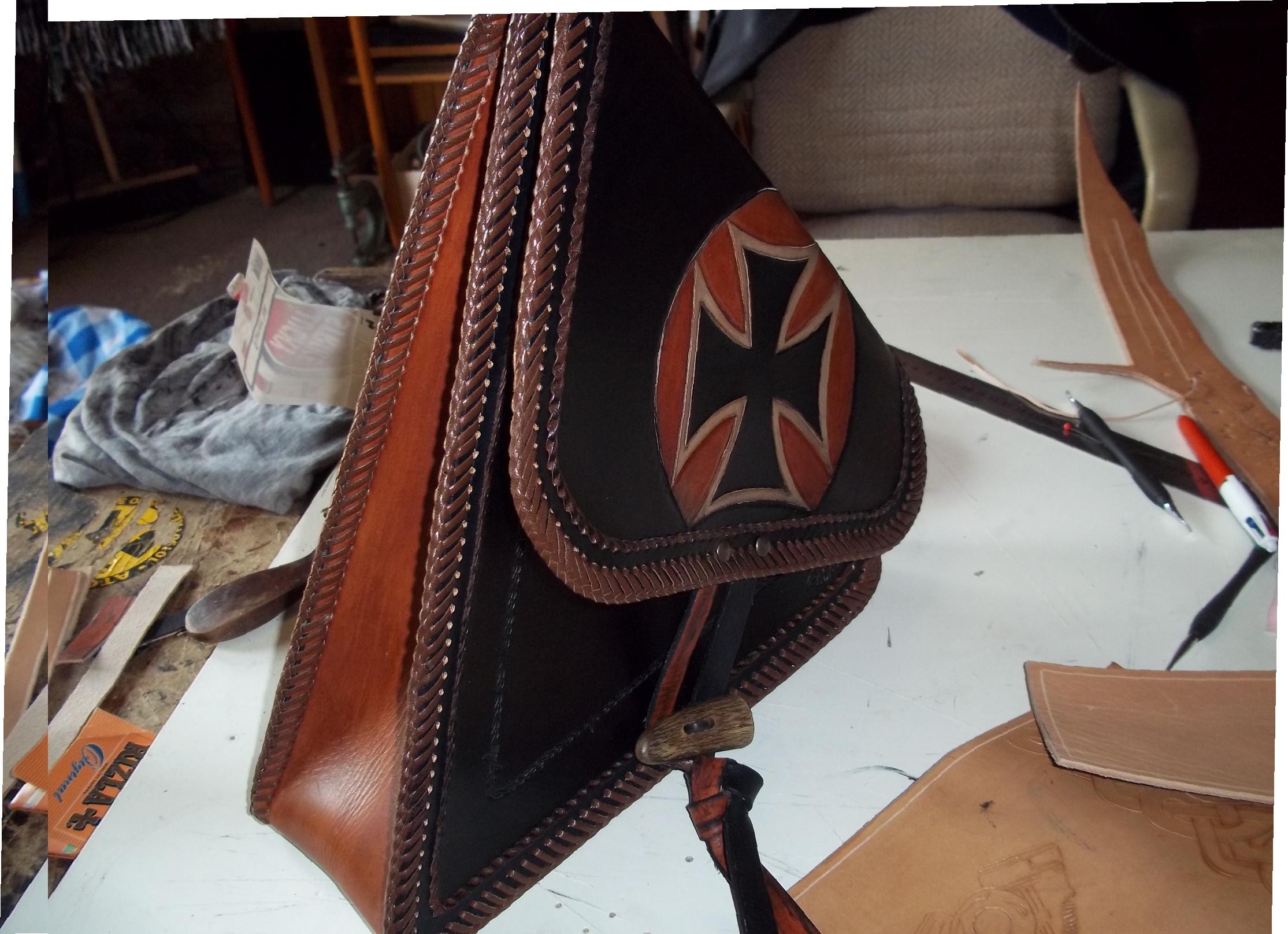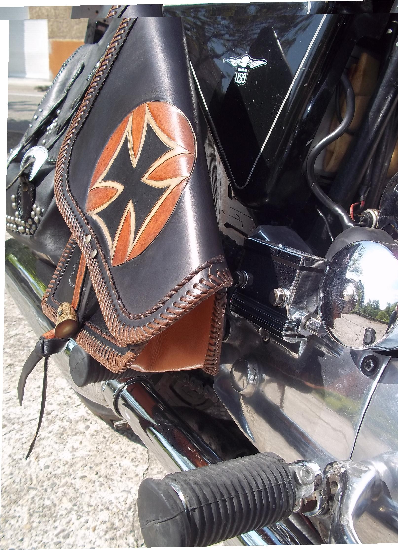 sacoche en cuir entierement faite a la main pour rigide et softail