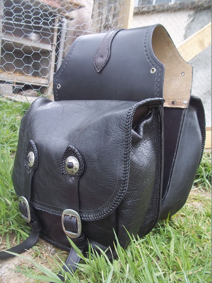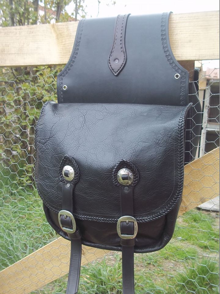 poigné (pour une meilleure prise des fontes) cousu sur la piece de jonction des sacoche et frise sur le pourtour