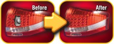 Plaquette autocollante conçue spécifiquement pour effectuer facilement une rapide réparation sur la plupart des types d'optique automobiles.