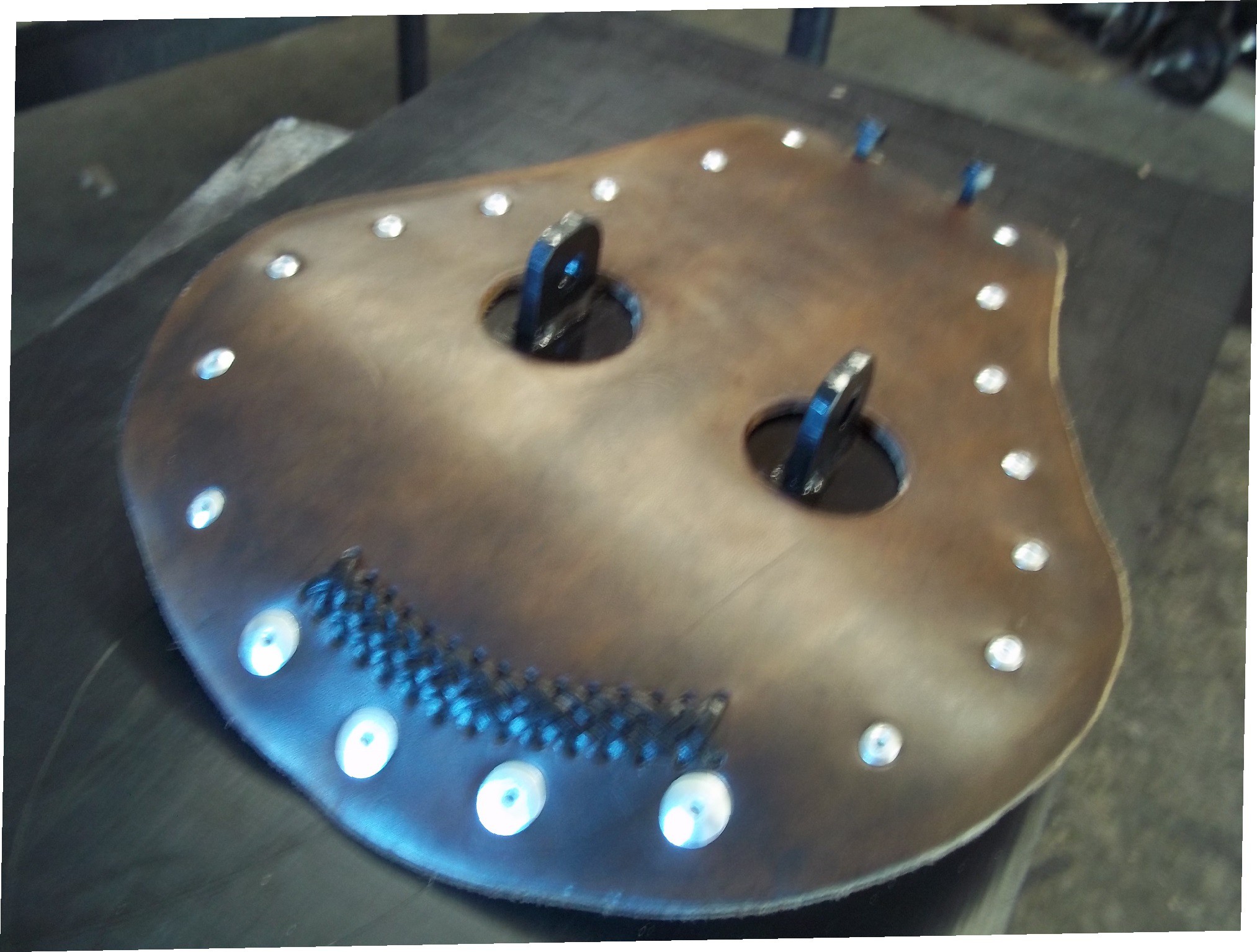 full cuir de 3.5mm dessus et dessous -fixer sur le dessous en plus de la couture par des rivets