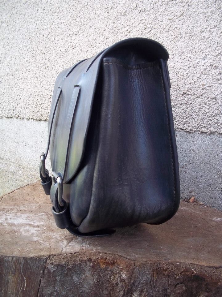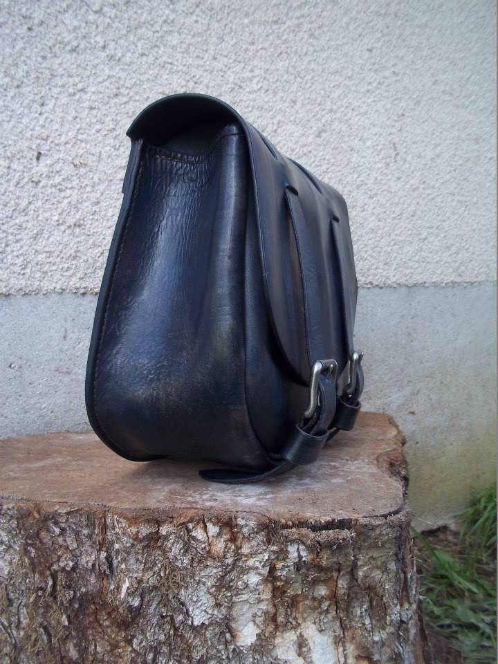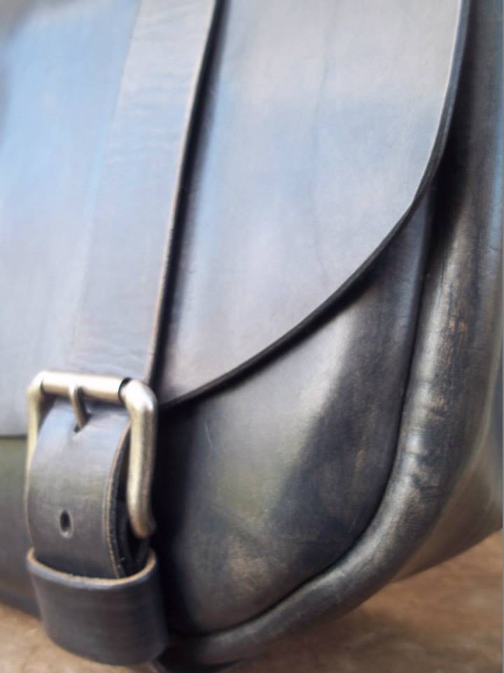fermeture par deux sangles cousus de 3.8 cm de large et passant cuir cousus egalement