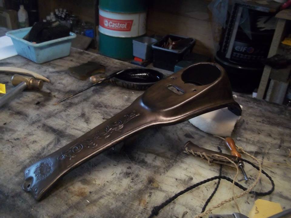 entiérement fait main  cache compteur en cuir de 2mm pleine fleur -cuir repoussé motif au choix mais a valider avant la commande- couleur au choix également
