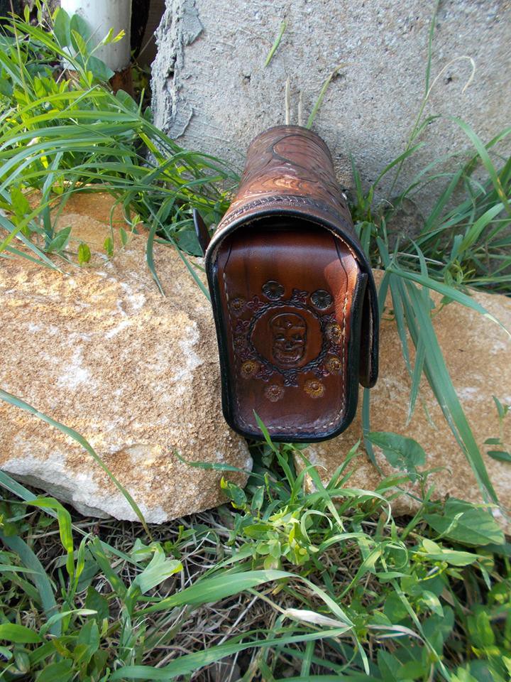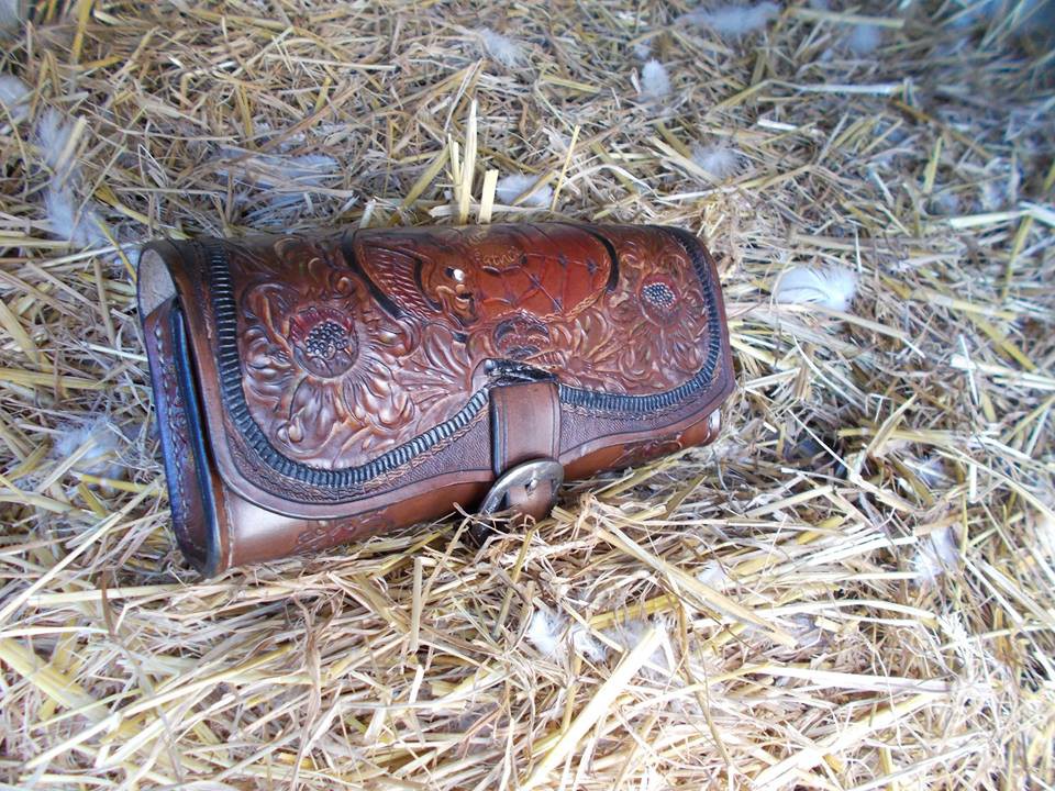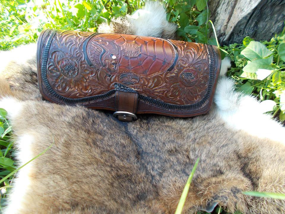 100% fait main trousse en cuir pleine fleur de 3.5 mm - couture sellier a la main-cuir repoussé floral US avec variante tete et toiler araigné_ style Grateffull dead ;)