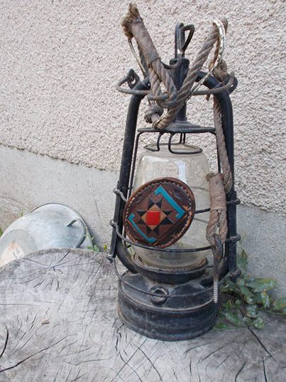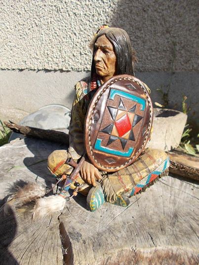 Boucle  de ceinture en cuir pleine fleure -  cuir repousse motif Amérindien