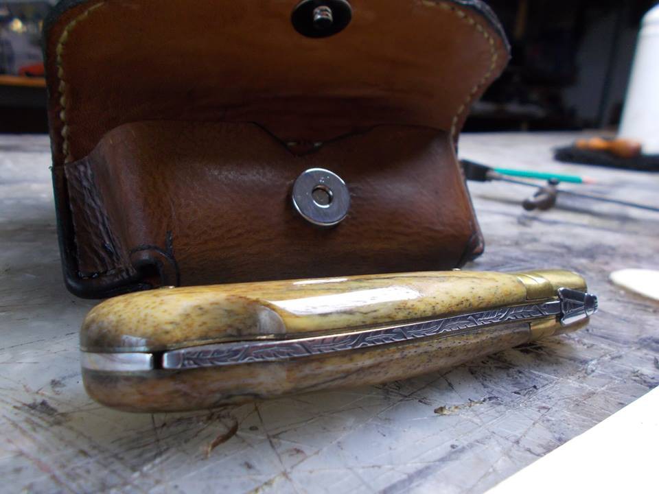 etui a cooteau en cuir de 3mm pleine fleure double veau