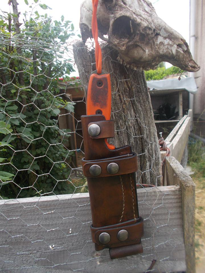 rouleau cuir cousu - pour fusil a affuter -petite lampe-fixation corde ou lacet