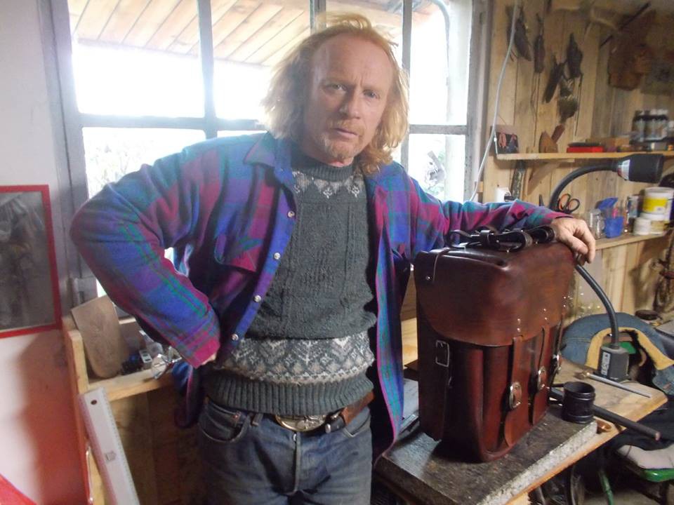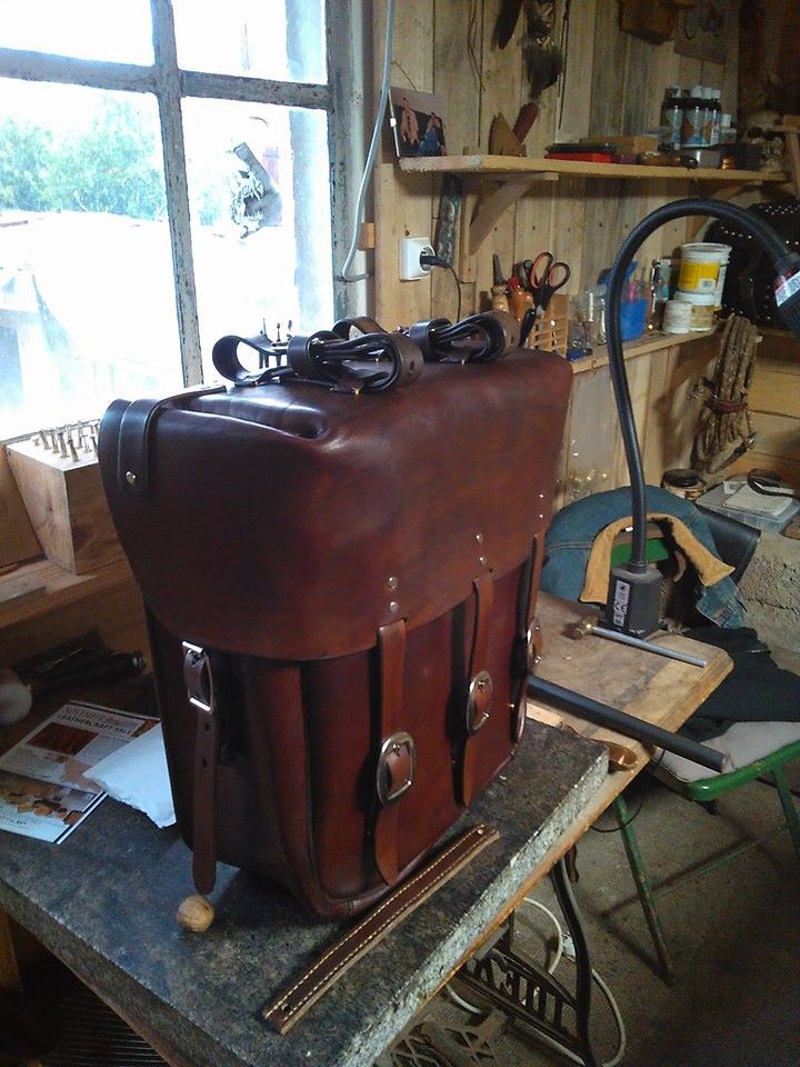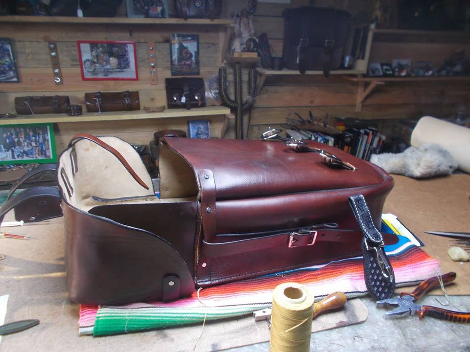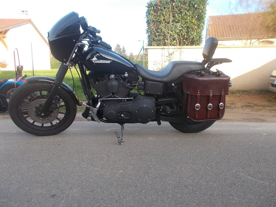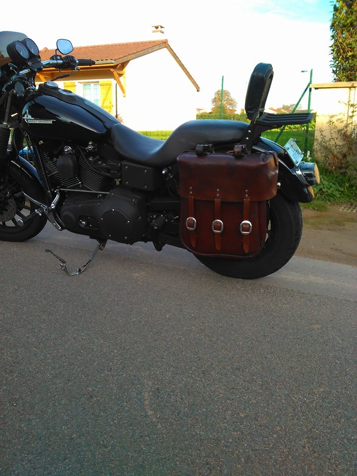sacoche lateral pour dyna ou autre model a amortisseur de la marque en cuir pleine fleur haut de gamme de 3.5mm