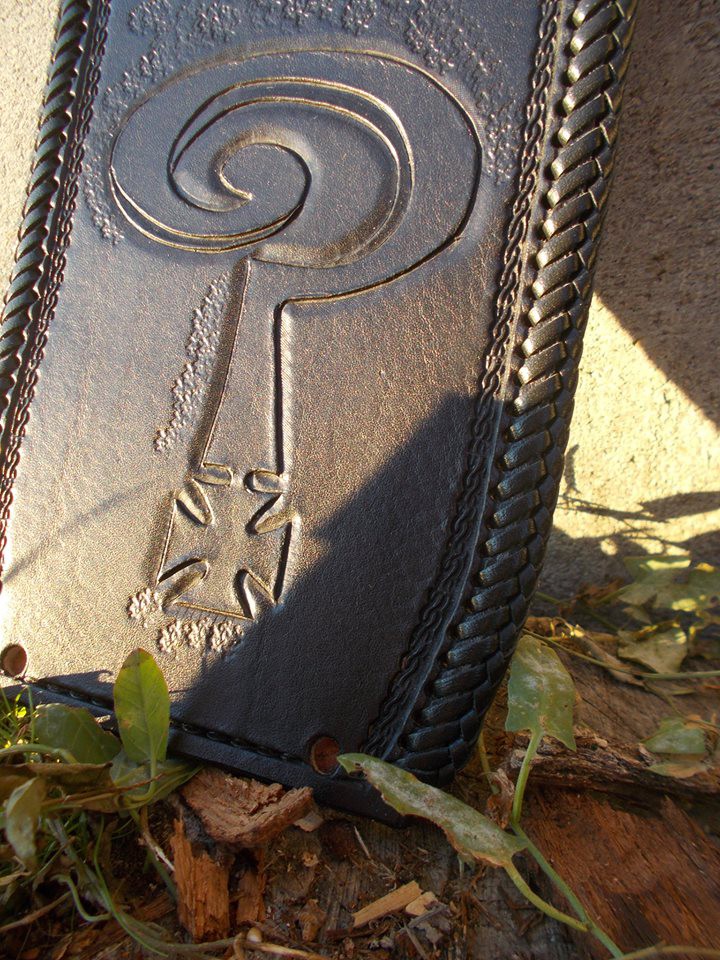 trousse a outil    cuir    pour sportser harley ou autres entierement faite a la main dans du cuir de 3 mm d epaisseur, couture sellier , de meme pour les sangles de fermeture  cette trousse est ciré patiné mais couleur au choix cuir repoussé - model   a votre discrétion apres validation dimension 27 X11   Cm   fixation par sangles -fournies un travaille me model unique ...alors