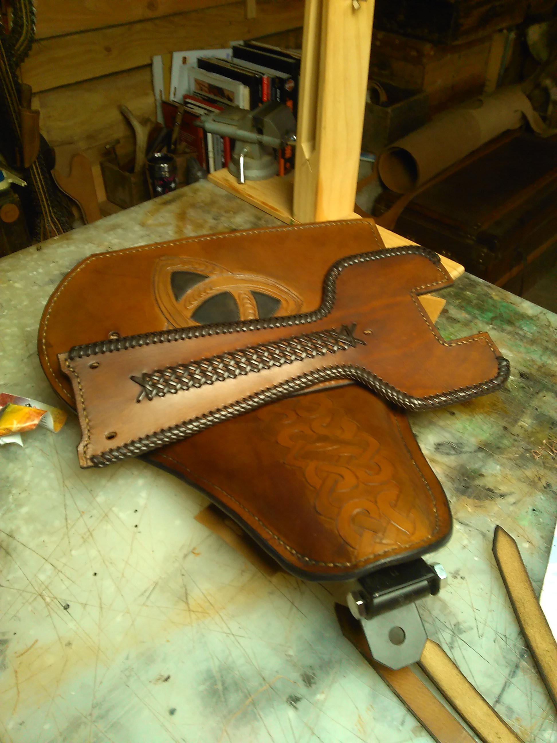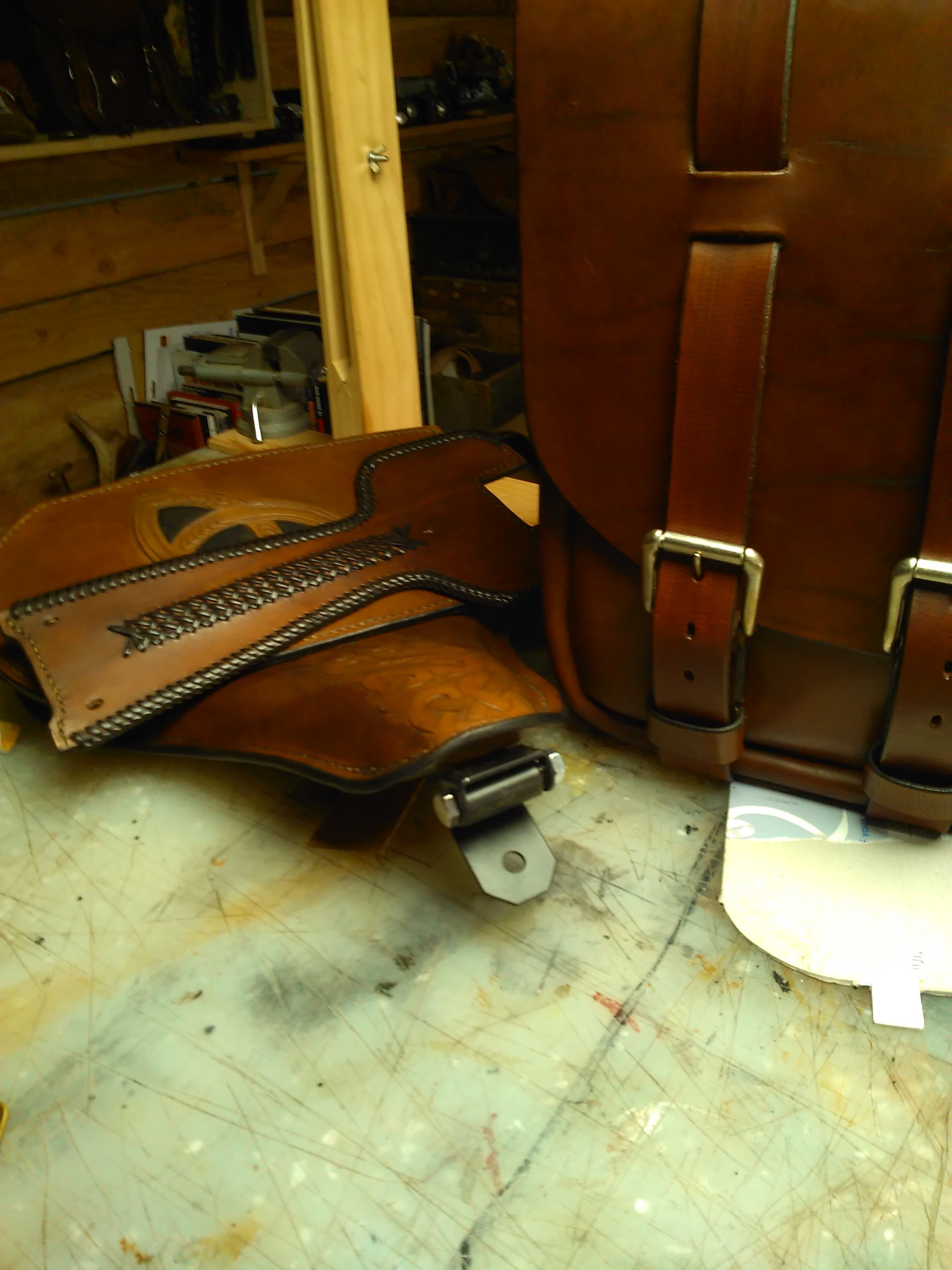 capot de la sacoche double couture -pas de rivets sur mes créationsur ce model teinture marron avec leger aspect vieilli